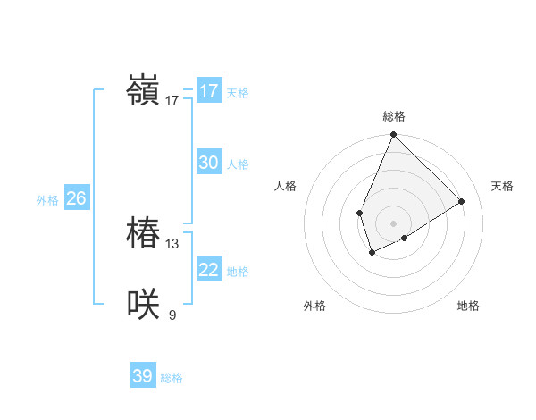 嶺 椿咲さんの総格は39画の5点!