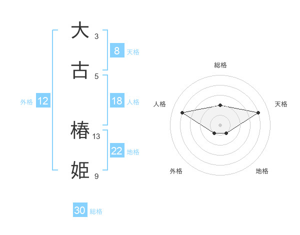 大古 椿姫さんの総格は30画の2点!