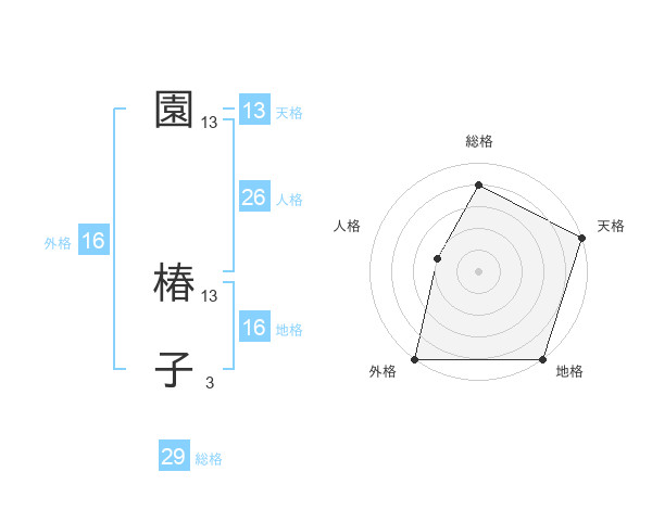 園 椿子さんの天格は13画の5点!