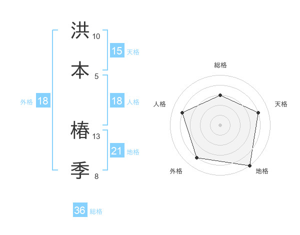 洪本 椿季さんの総格は36画の3点!