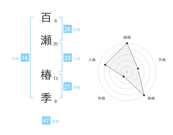 百瀬 椿季さんの総格は47画の5点!