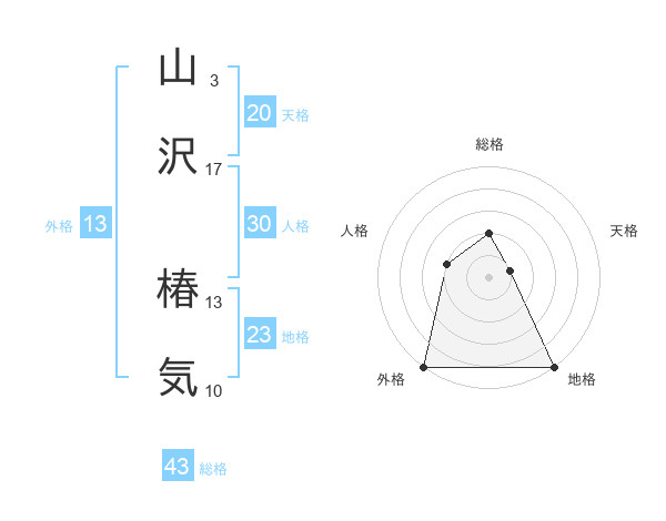 山沢 椿気さんの外格は13画の5点!
