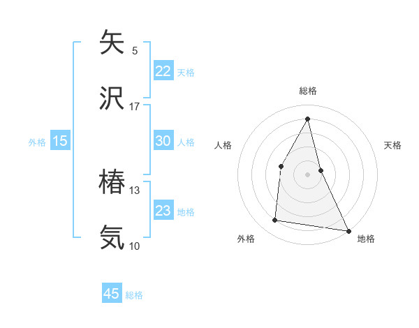 矢沢 椿気さんの総格は45画の4点!
