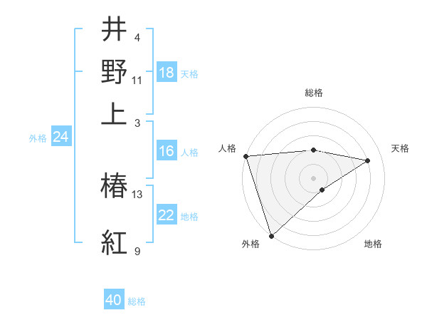 井野上 椿紅さんを姓名の画数から五運を鑑定
