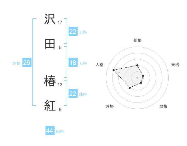 沢田 椿紅さんの総格は44画の2点