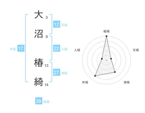 大沼 椿綺さんを姓名の画数から五運を鑑定