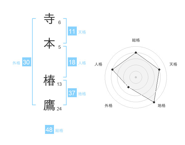 寺本 椿鷹さんの地格は37画の5点!