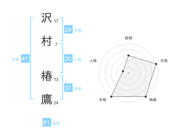 沢村 椿鷹さんを姓名の画数から五運を鑑定