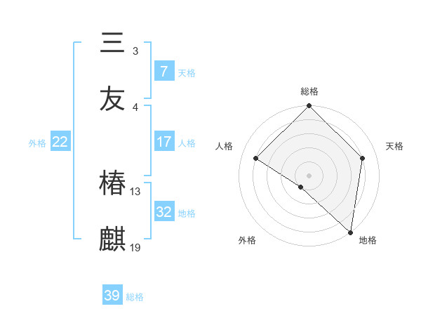 三友 椿麒さんの総格は39画の5点!
