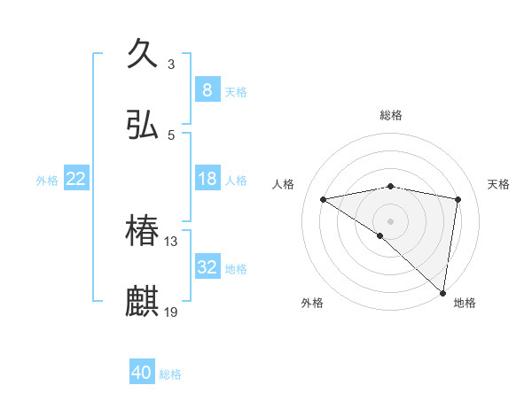 久弘 椿麒さんの外格は22画の1点!