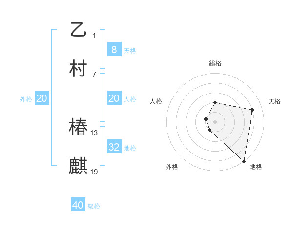 乙村 椿麒さんの地格は32画の5点!