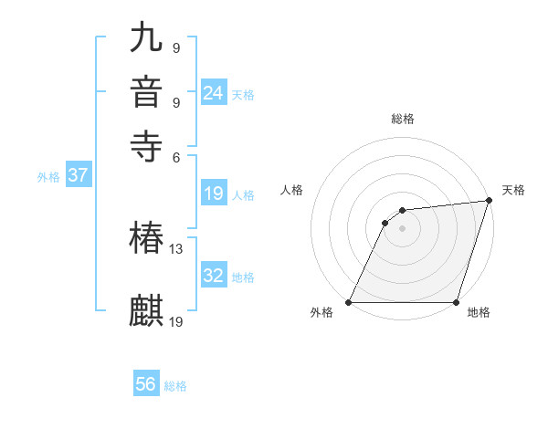 九音寺 椿麒さんの外格は37画の5点!