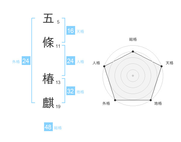 五條 椿麒さんを姓名の画数から五運を鑑定