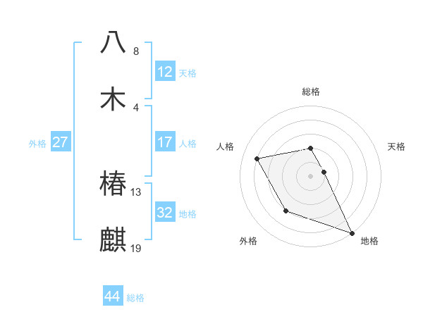 八木 椿麒さんの総格は44画の2点!