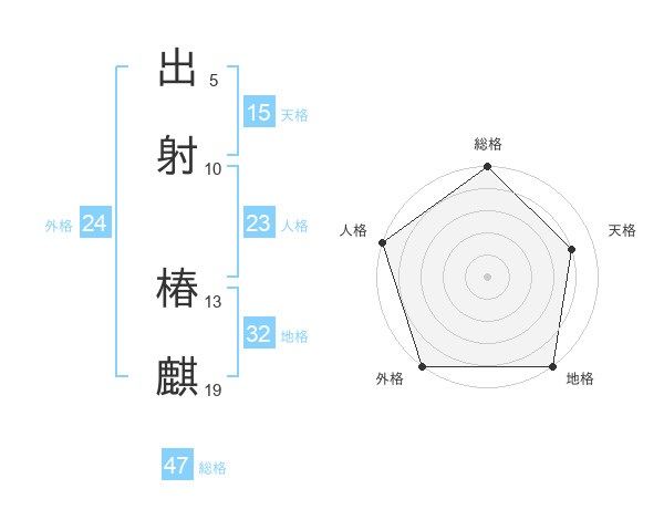 出射 椿麒さんの総格は47画の5点!