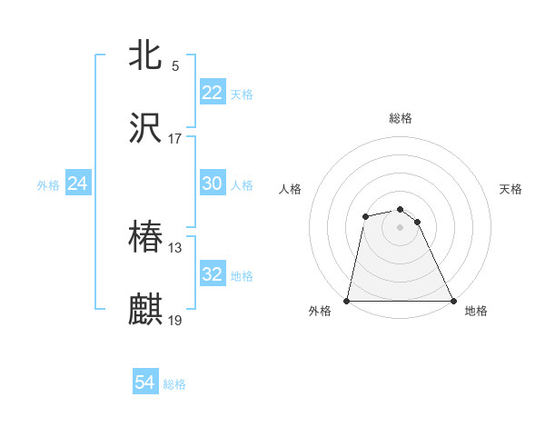 北沢 椿麒さんを姓名の画数から五運を鑑定