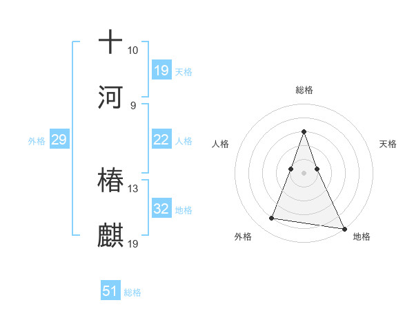 十河 椿麒さんを姓名の画数から五運を鑑定