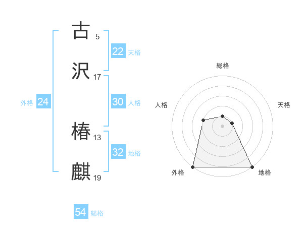 古沢 椿麒さんの総格は54画の1点!