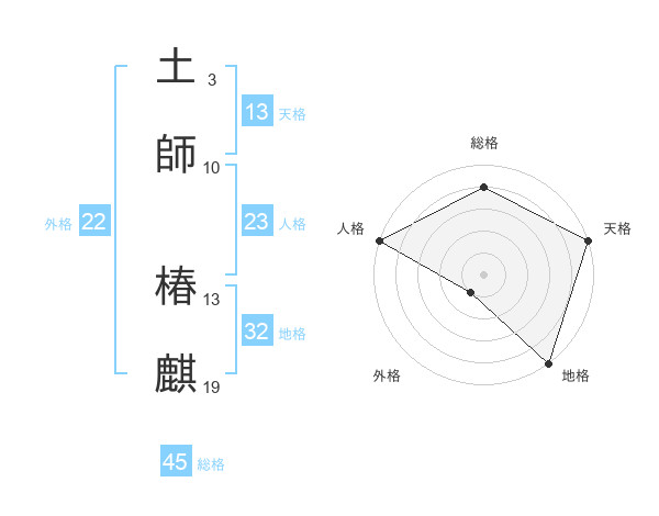 土師 椿麒さんを姓名の画数から五運を鑑定