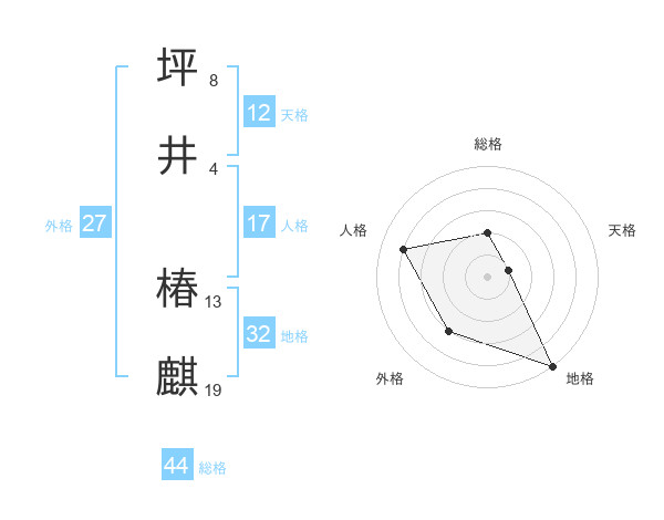 坪井 椿麒さんの総格は44画の2点!