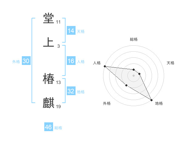 堂上 椿麒さんの総格は46画の1点!