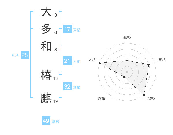 大多和 椿麒さんを姓名の画数から五運を鑑定