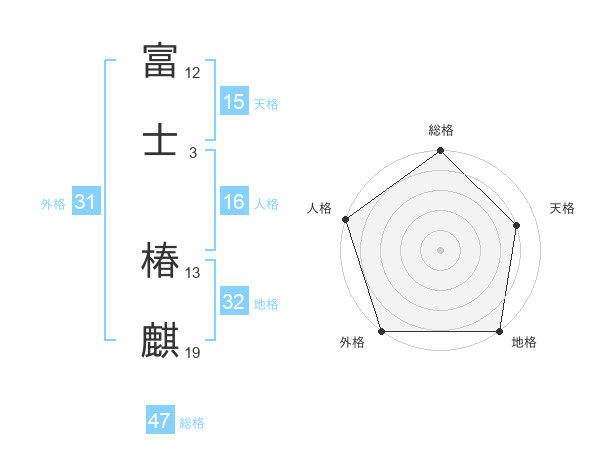 富士 椿麒さんの外格は31画の5点!