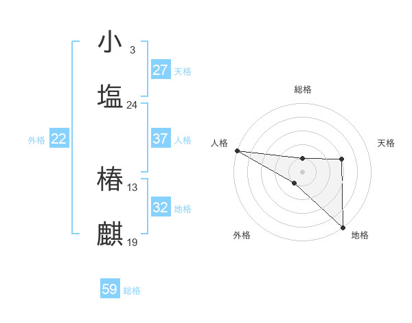 小塩 椿麒さんを姓名の画数から五運を鑑定