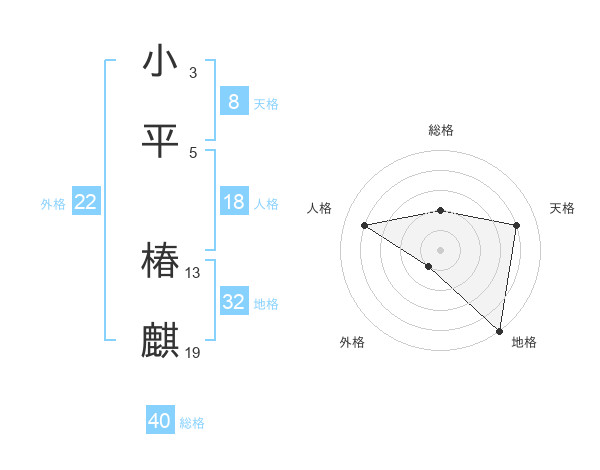 小平 椿麒さんの外格は22画の1点!