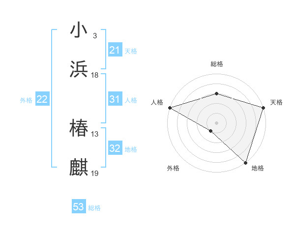 小浜 椿麒さんを姓名の画数から五運を鑑定
