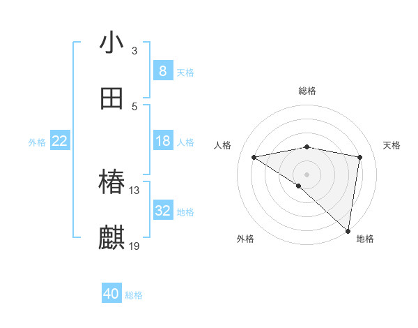 小田 椿麒さんの天格は8画の4点!
