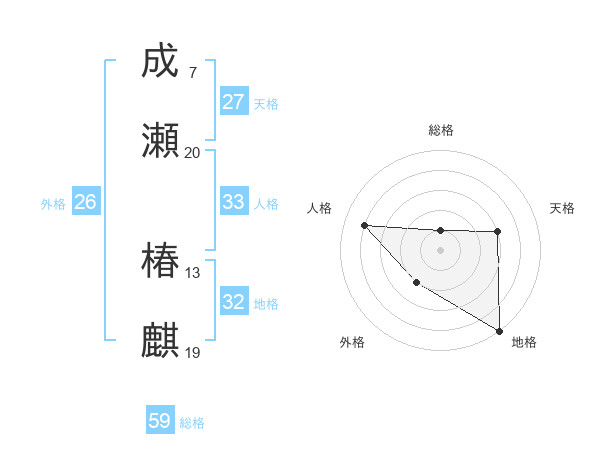 成瀬 椿麒さんを姓名の画数から五運を鑑定