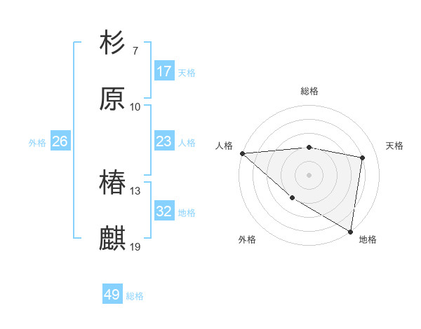 杉原 椿麒さんの総格は49画の2点!