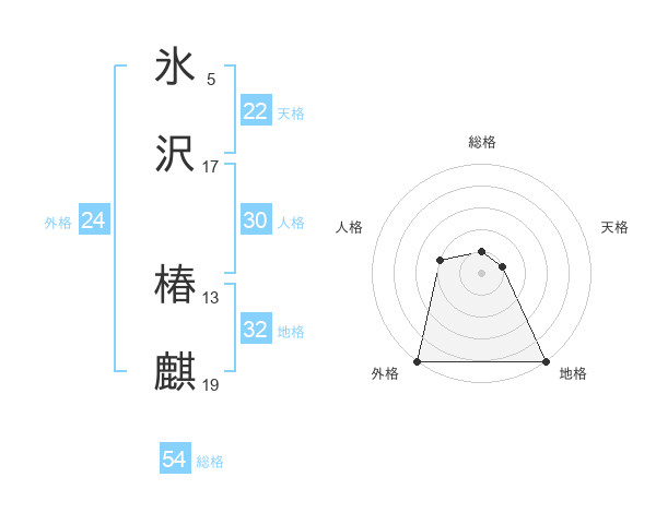 氷沢 椿麒さんを姓名の画数から五運を鑑定
