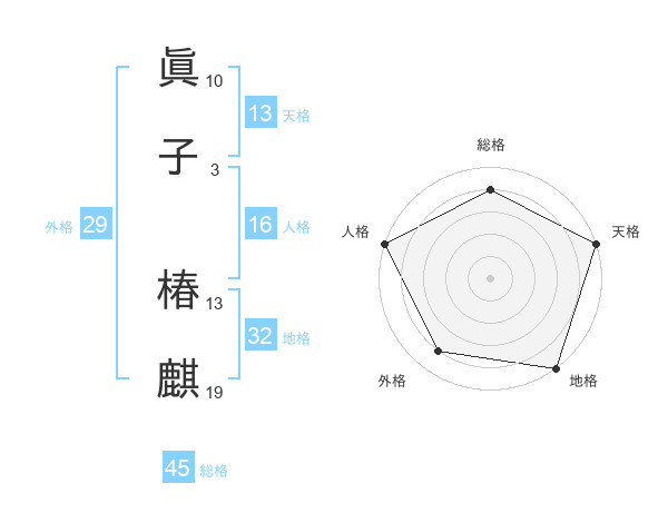 眞子 椿麒さんの天格は13画の5点!