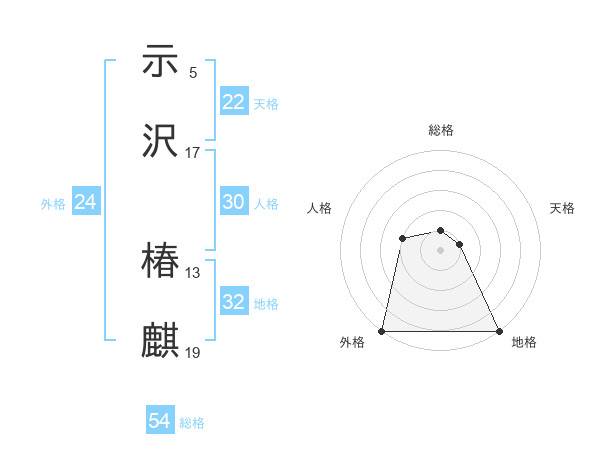 示沢 椿麒さんの外格は24画の5点!