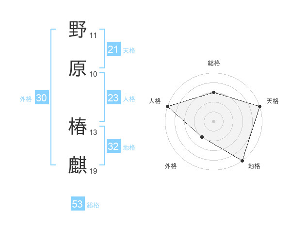 野原 椿麒さんの総格は53画の3点!