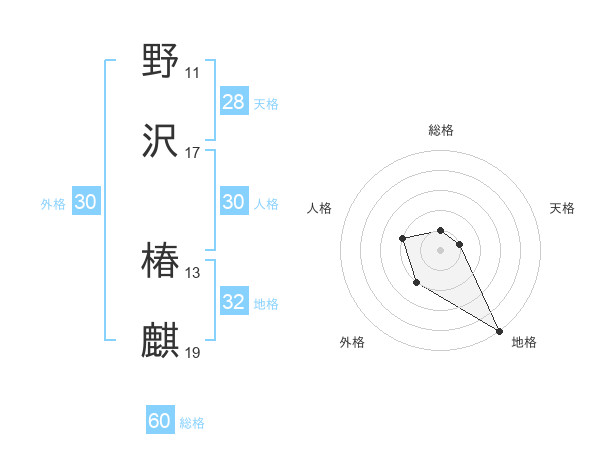 野沢 椿麒さんを姓名の画数から五運を鑑定