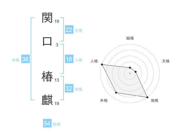 関口 椿麒さんの外格は38画の4点!
