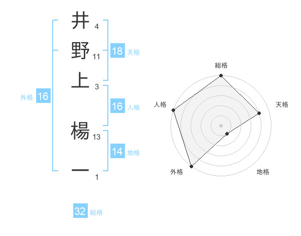 井野上 楊一さんの総格は32画の5点!