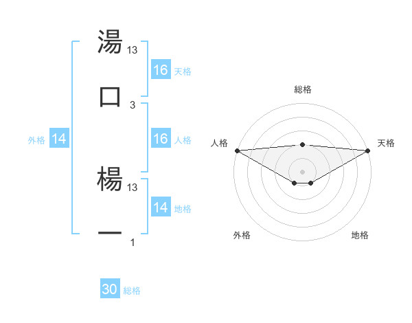 湯口 楊一さんの天格は16画の5点!