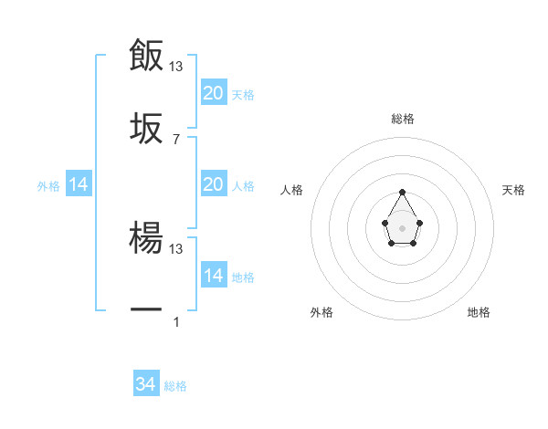 飯坂 楊一さんの総格は34画の2点!