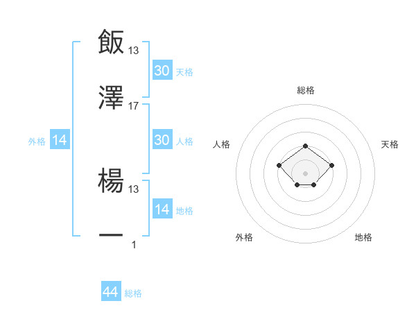飯澤 楊一さんの総格は44画の2点!