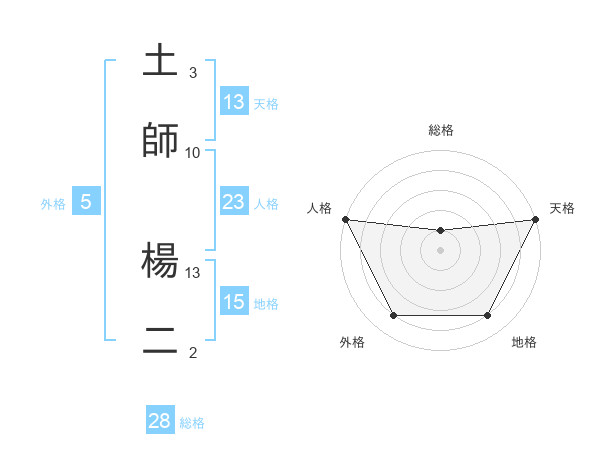土師 楊二さんの天格は13画の5点!
