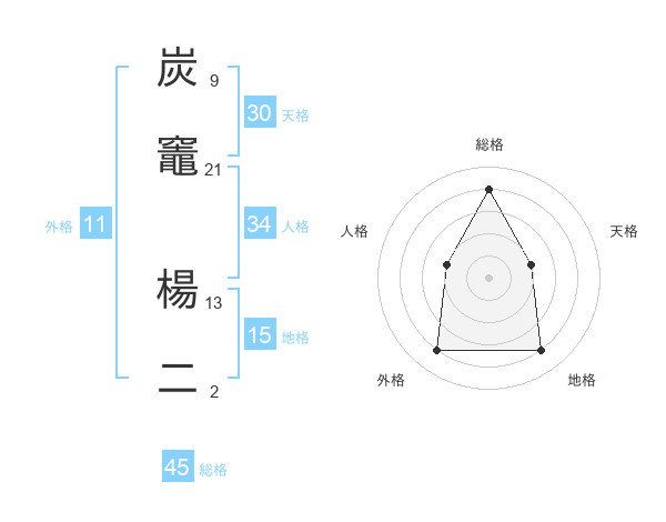 炭竈 楊二さんの総格は45画の4点!