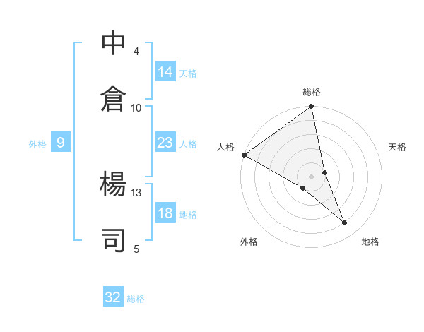 中倉 楊司さんの総格は32画の5点!