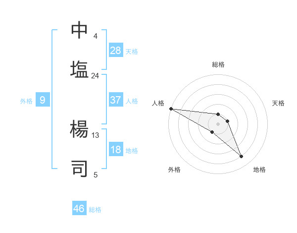 中塩 楊司さんの総格は46画の1点!