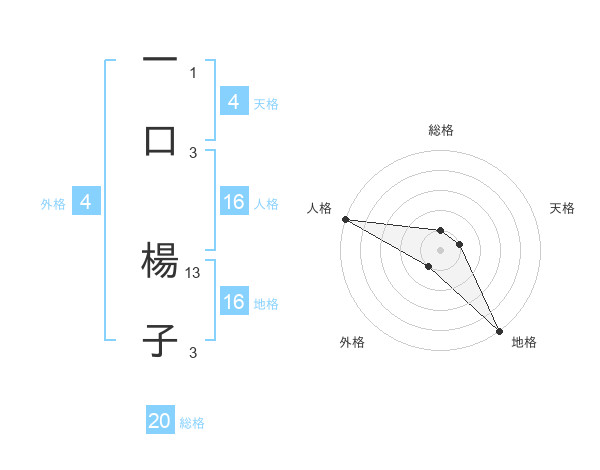 一口 楊子さんの総格は20画の1点!