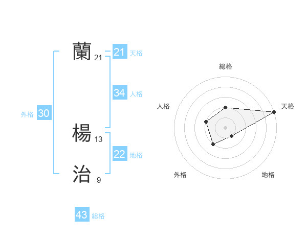 蘭 楊治さんの天格は21画の5点!