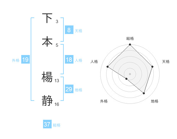 下本 楊静さんの総格は37画の5点!